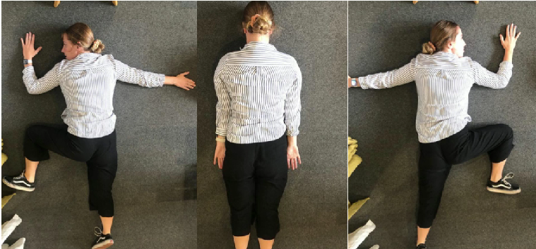 Reakce: Paže a noha na straně "čelisti" se prodlužují. Paže a nohy se ohýbají na straně "lebky".